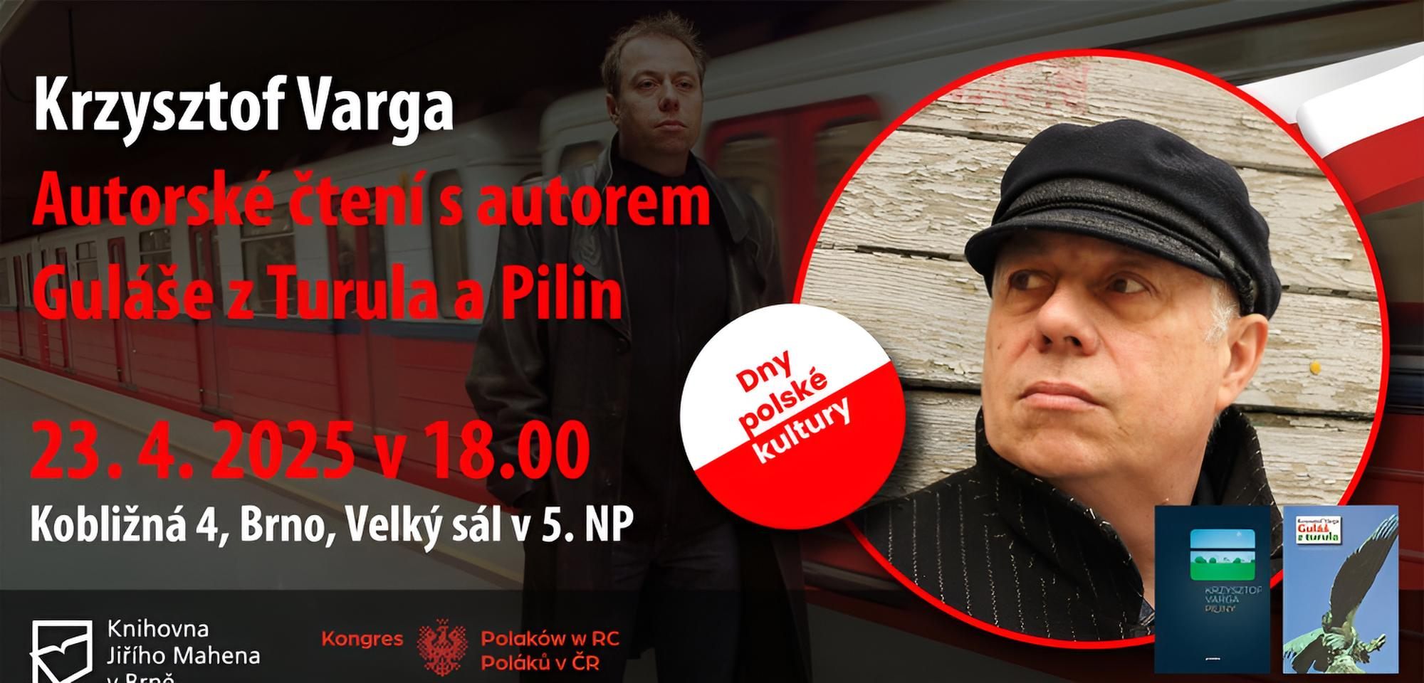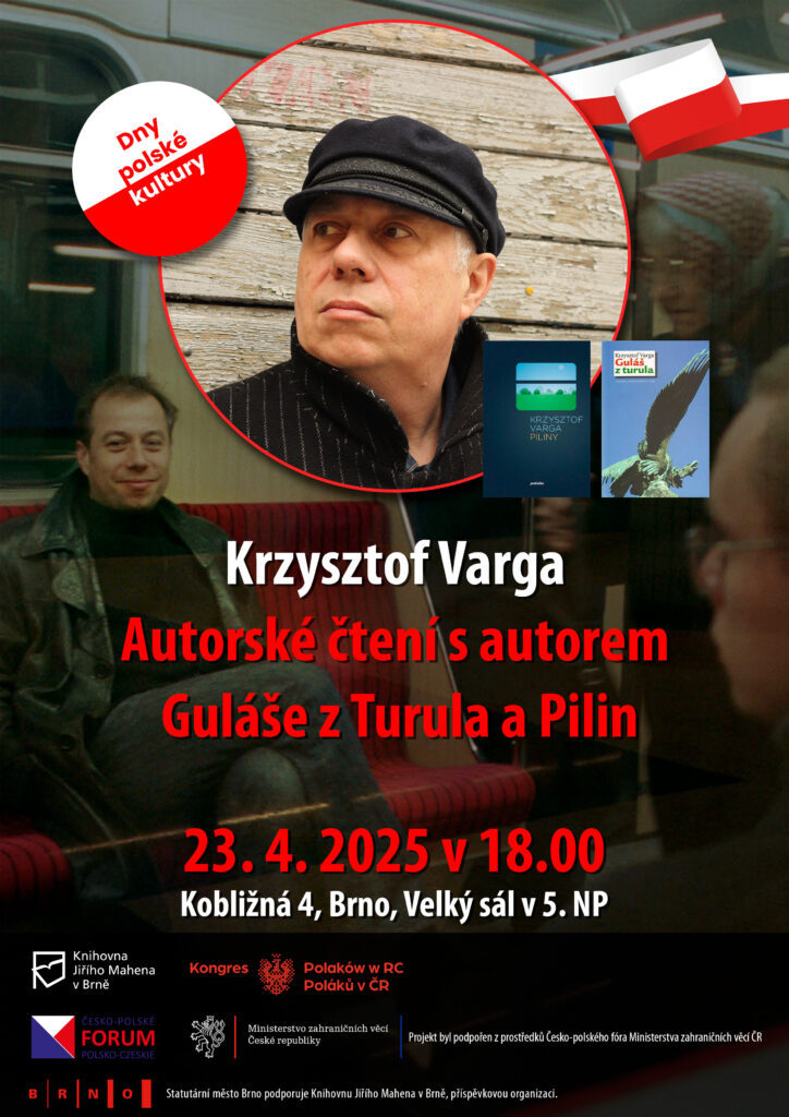 W środę 23 kwietnia 2025 r. o godz. 18.00 w dużej sali na 5. piętrze Biblioteki Jiříego Mahena w Brnie odbędzie się spotkanie autorskie z Krzysztofem Vargą – pisarzem, krytykiem literackim i jednym z najbardziej rozpoznawalnych współczesnych autorów polskich.